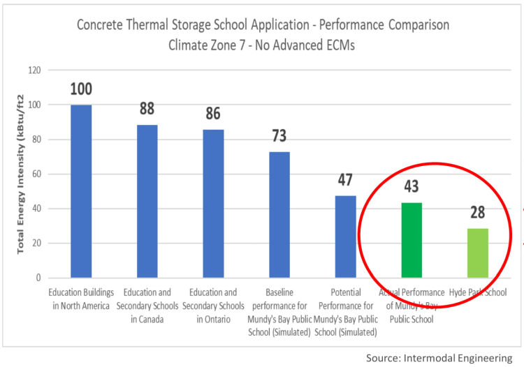 structural thermal energy storage with integrated ventilation enables the two most efficient schools in Canada, and a 678K sf net positive campus in South Carolina, USA. These schools were discussed in a recent NREL research report on energy efficient K-12 Schools due to their innovative approach to efficiency.